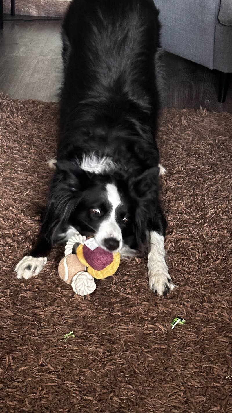 Rex, de vrolijke border collie, trippelde opgewonden door het huis. Zijn staart zwiepte als een wapperende vlag. Vandaag was een bijzondere dag. Zijn baasjes hadden hem een nieuw speeltje gegeven, meerdere zelfs, en Rex kon zijn geluk niet op.