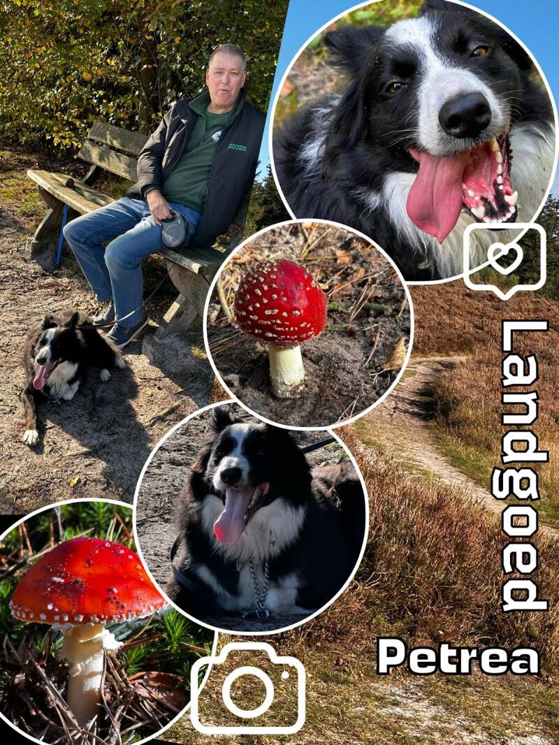 Hoi, ik ben Rex, de stoere border collie! Vandaag was een geweldige dag, want ik mocht mee met baasje en het vrouwtje op een wandeling. We gingen naar het bos dat Landgoed Petrea heet. Het bos was prachtig, helemaal in mooie herfstkleuren. Overal zag ik rood met witte paddenstoelen, net kleine huisjes voor kabouters!
