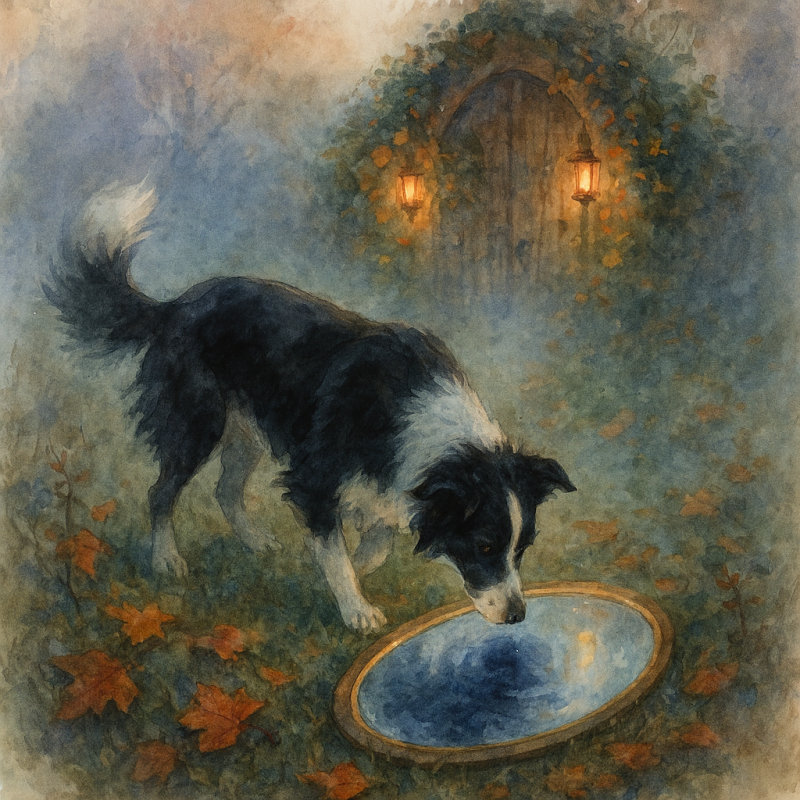 Rex snuffelt aan de spiegel. Het glas is helder, maar diep. Alsof het niet alleen reflecteert, maar ook uitnodigt. Dan, op een mistige ochtend, verschijnt er iets nieuws in de tuin: een oude houten poort, begroeid met klimop en versierd met kleine lantaarns. Niemand weet waar hij vandaan komt.