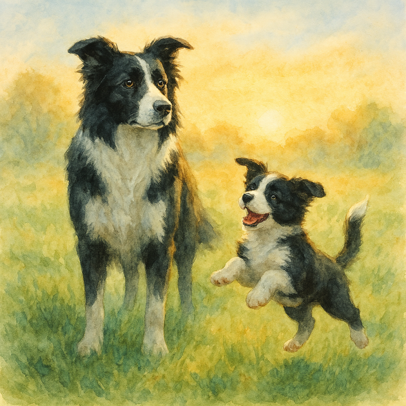 De ochtend begint rustig. De zon werpt gouden strepen over het veld en ik voel de frisse wind door mijn vacht. Ik ben Rex, de grote broer. Mijn taak? Bram in de gaten houden. Hij is nog maar een pup, vol energie en ideeën die vaak niet zo slim zijn.
