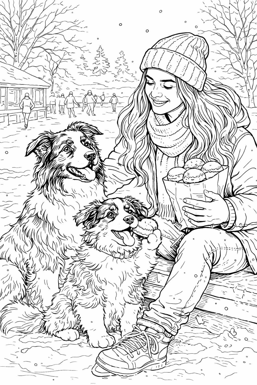 “Kom op jongens,” zei het baasje vrolijk. “We gaan naar de schaatsbaan. En daarna… oliebollen!”