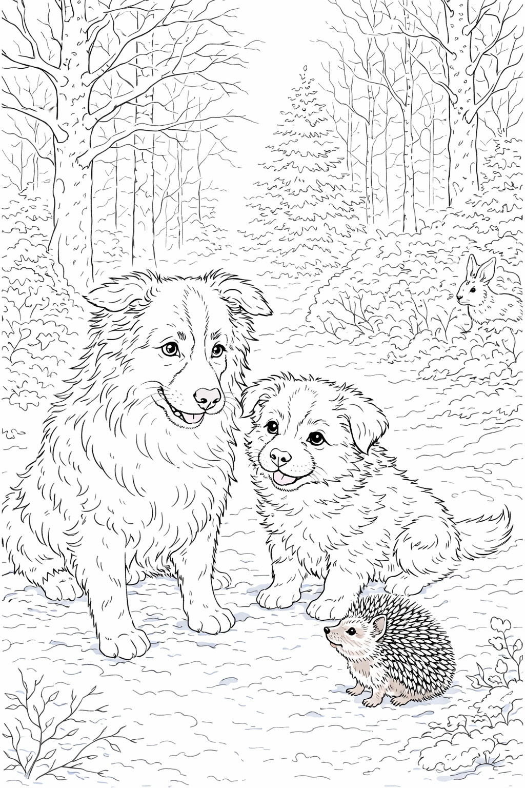 Het Grote Bos lag er rustig bij. De sneeuw glinsterde zacht tussen de bomen en Rex en Bram liepen samen over het bekende bospad. Ze hadden net iedereen een gelukkig nieuwjaar gewenst en waren tevreden op weg naar huis.
