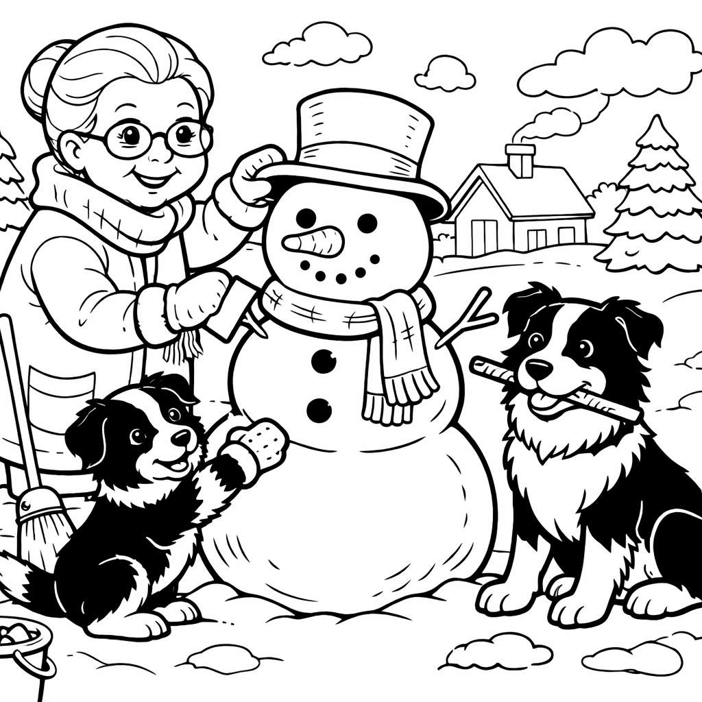 Bram sprong enthousiast om de sneeuwpop heen en liet kleine pootafdrukjes achter. Rex ging er trots naast zitten, alsof hij wilde laten zie: dit hebben wij samen gemaakt. Oma keek naar de twee honden en voelde haar hart warm worden, ondanks de kou.