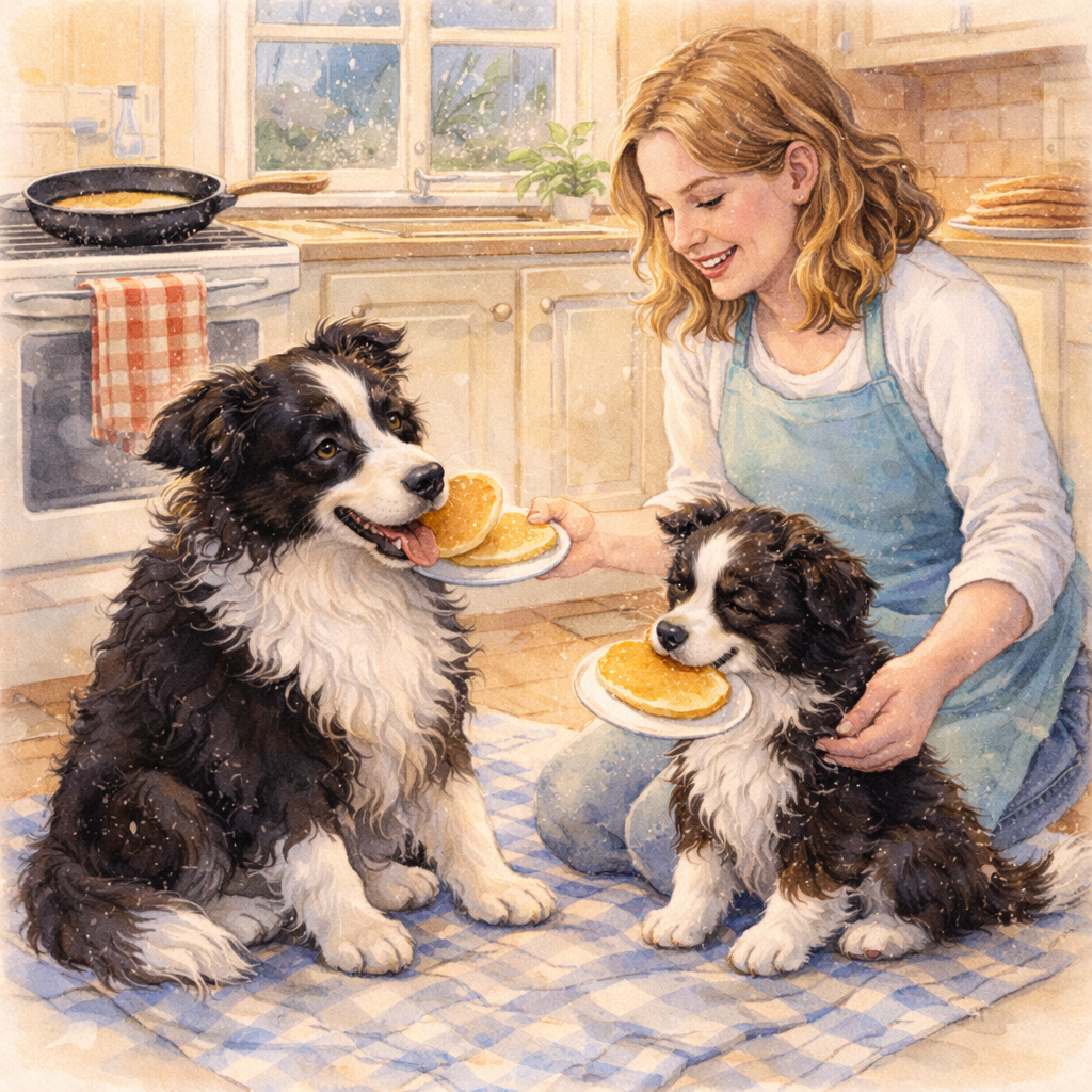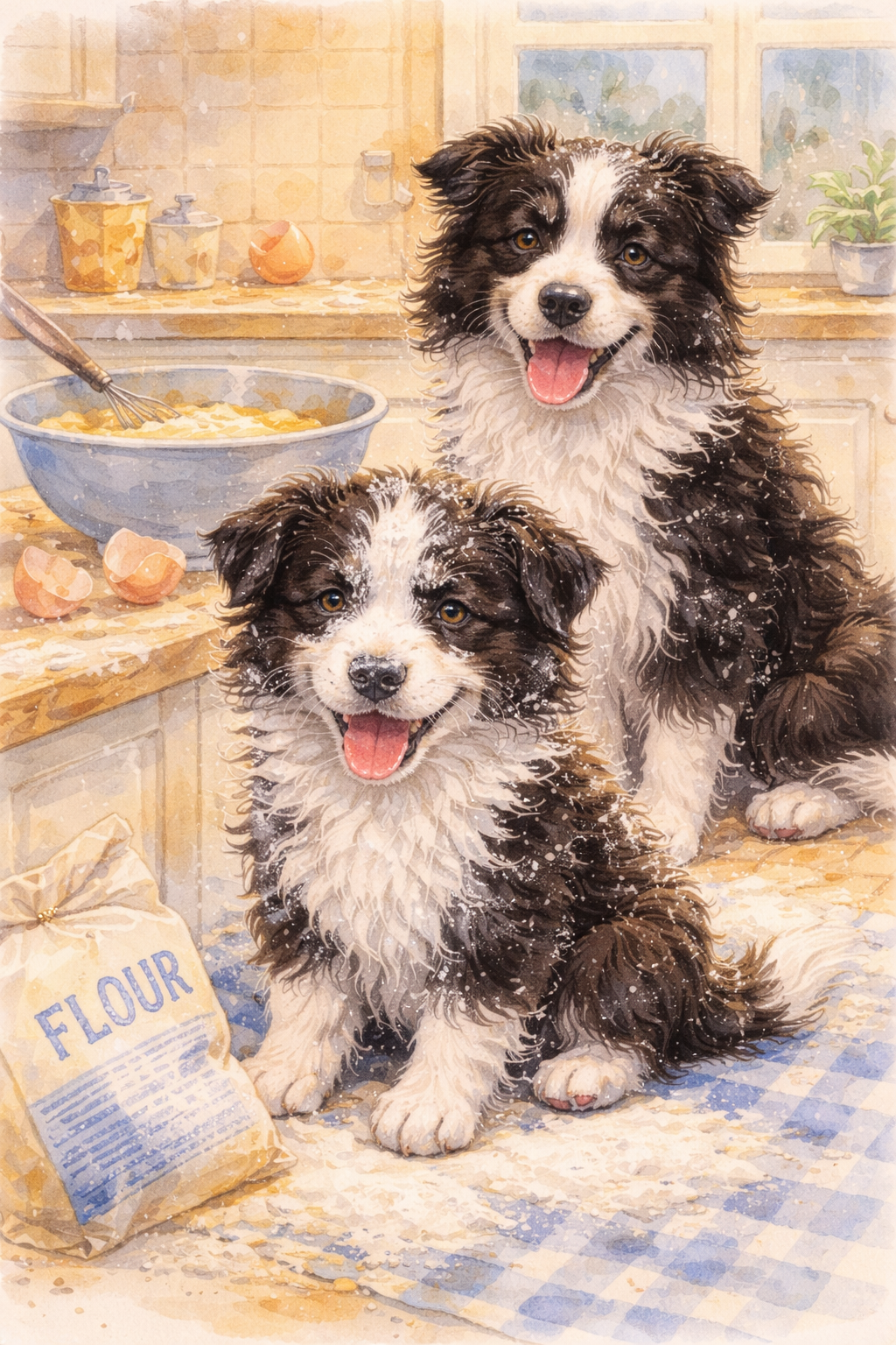 Het was een rustige ochtend in huis. Buiten tikte de regen zacht tegen het raam, maar binnen was het warm en gezellig. In de keuken stond hun bazinnetje al klaar met een grote kom op het aanrecht.