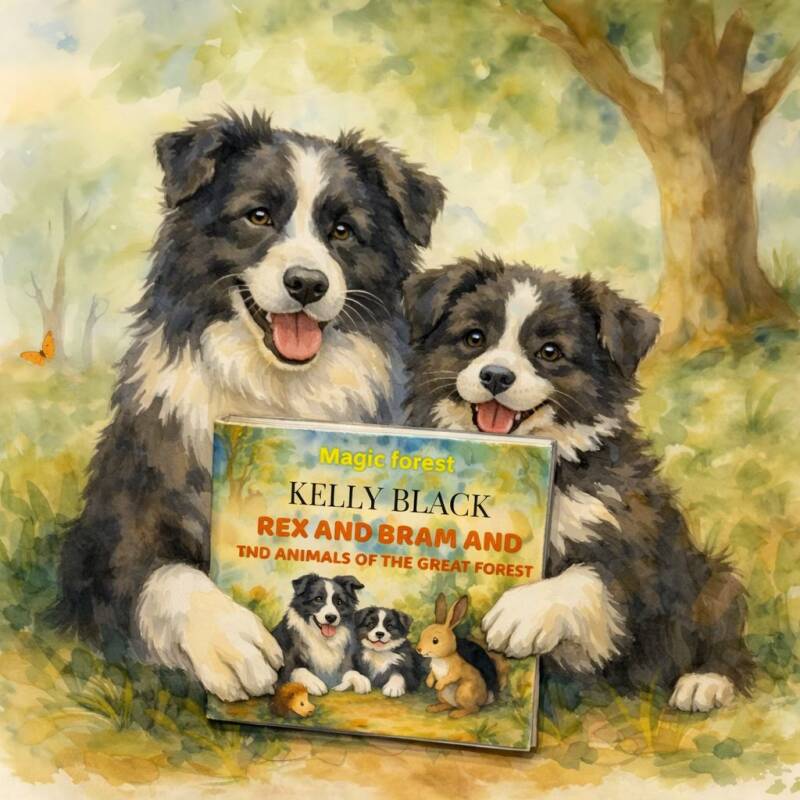 Kelly Black is de auteur achter de hartverwarmende verhalen van Rex en Bram, twee zwart-witte Border Collies die samen avonturen beleven in de natuur. Geïnspireerd door echte momenten met haar honden begon Kelly verhalen te schrijven over hun wandelingen, ontdekkingen en de dieren die ze onderweg tegenkomen.